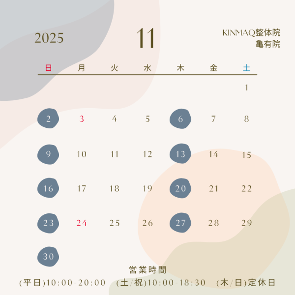 ・11月24日(月)勤労感謝の日/振替休日 10:00~18:30(最終受付18:00)